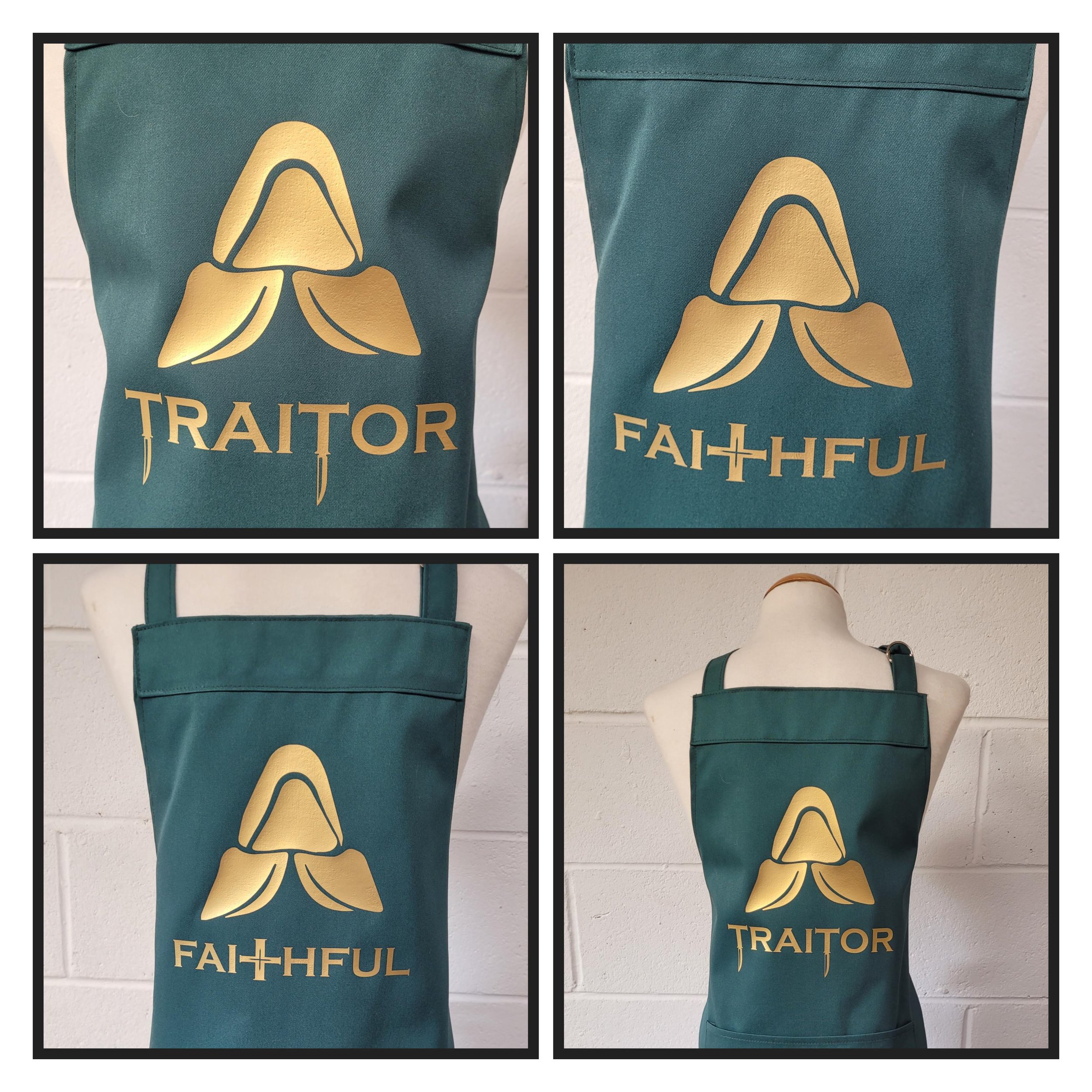 Shop › Adult : Medium cotton apron - traitor / faithful design Made in England Image 1 of 5 Image 2 of 5 Image 3 of 5 Image 4 of 5 Image 5 of 5 Adult : Medium cotton apron - traitor / faithful design Made in England £14.99 traitor / faithful design printed apronMedium adult apron with centre pocketAll aprons made and printed in EnglandSize of apron - 82cm x 63cm approx100% Cotton, printed apronMetal D ring for adjusting neck tieSelf ties in same colour as apron : 77cmMachine washable at 40°COther sizes available Print colour: Select Print colour Gold White Silver Black print: Select print faithful traitor Add To Cart Added! traitor / faithful design printed apronMedium adult apron with centre pocketAll aprons made and printed in EnglandSize of apron - 82cm x 63cm approx100% Cotton, printed apronMetal D ring for adjusting neck tieSelf ties in same colour as apron : 77cmMachine washable at 40°COther sizes available