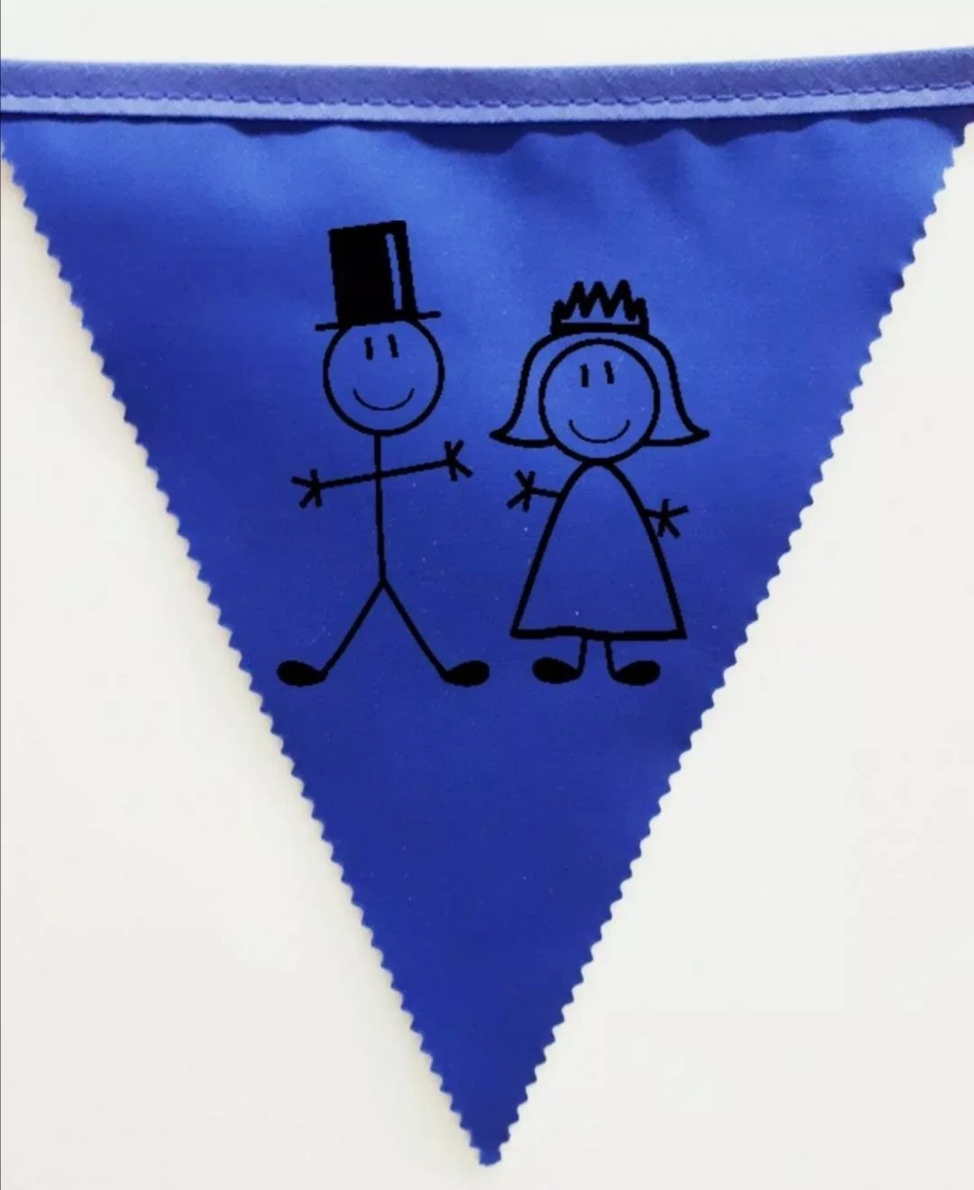 Bride and groom bunting is 5 mtrs long and the couple printed on every other flag
