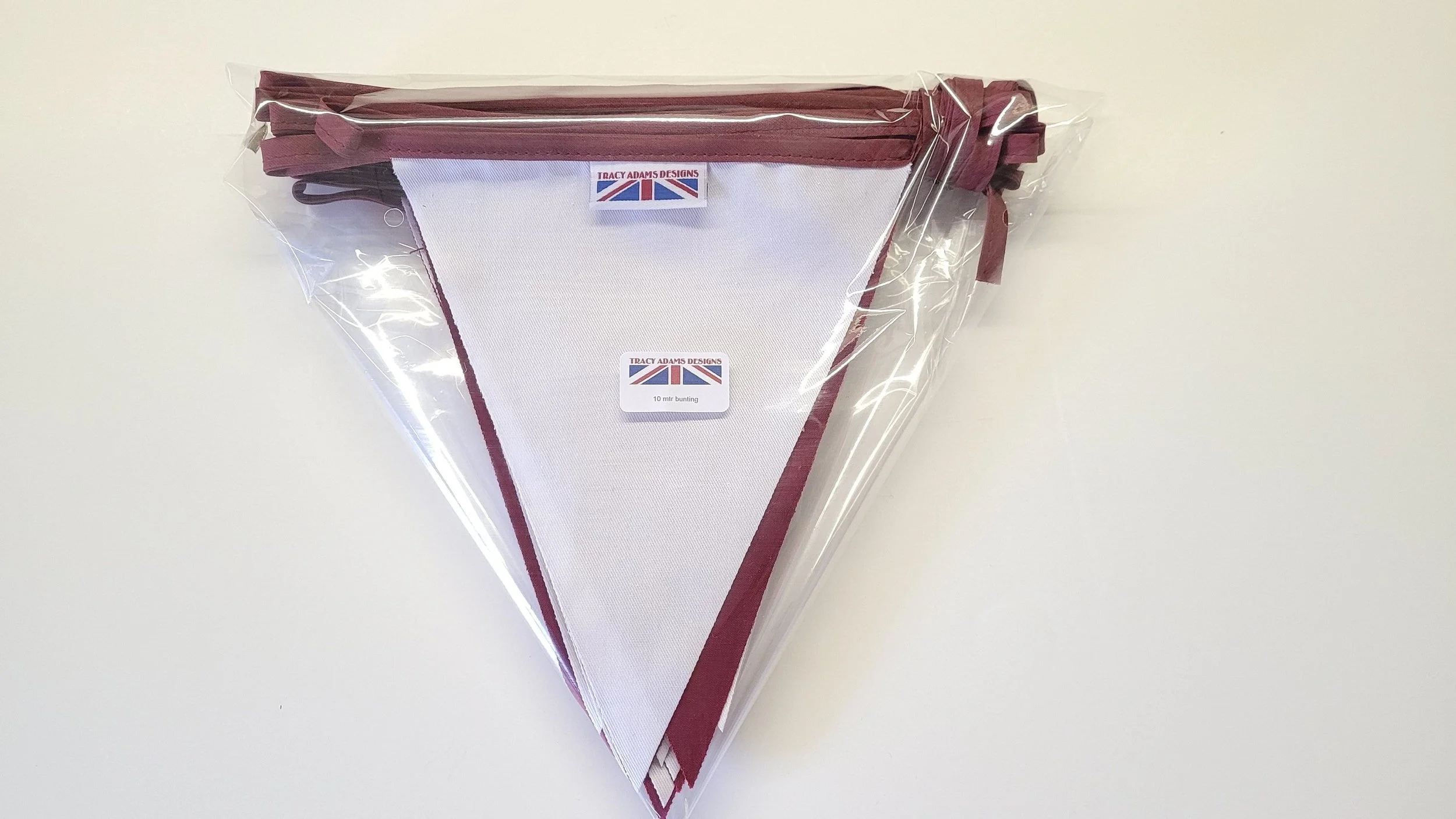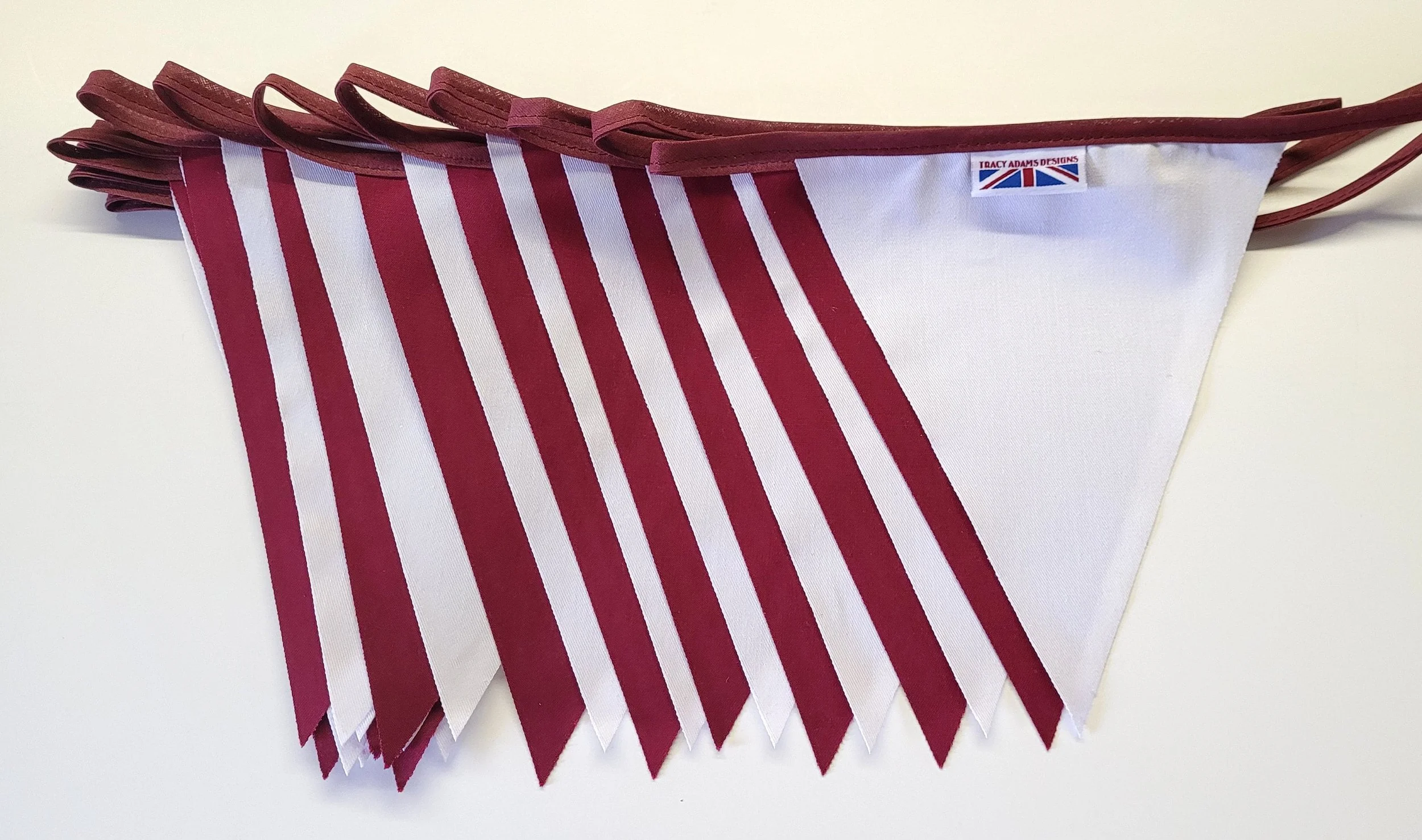 Shop › Burgundy and white - 10 mtr fabric bunting Image 1 of 4 Image 2 of 4 Image 3 of 4 Image 4 of 4 Burgundy and white - 10 mtr fabric bunting £11.99 Burgundy and White bunting10 metre has 30 flags Poly cotton single sided flags with cotton hanger flags are the same colour on reverse of the flag as the frontFlags approx 20cm in length and 22cm width at the topAll made in England to fantastic qualityOther colours and lengths available please don't hesitate to message me Add To Cart Added! Burgundy and White bunting10 metre has 30 flags Poly cotton single sided flags with cotton hanger flags are the same colour on reverse of the flag as the frontFlags approx 20cm in length and 22cm width at the topAll made in England to fantastic qualityOther colours and lengths available please don't hesitate to message me