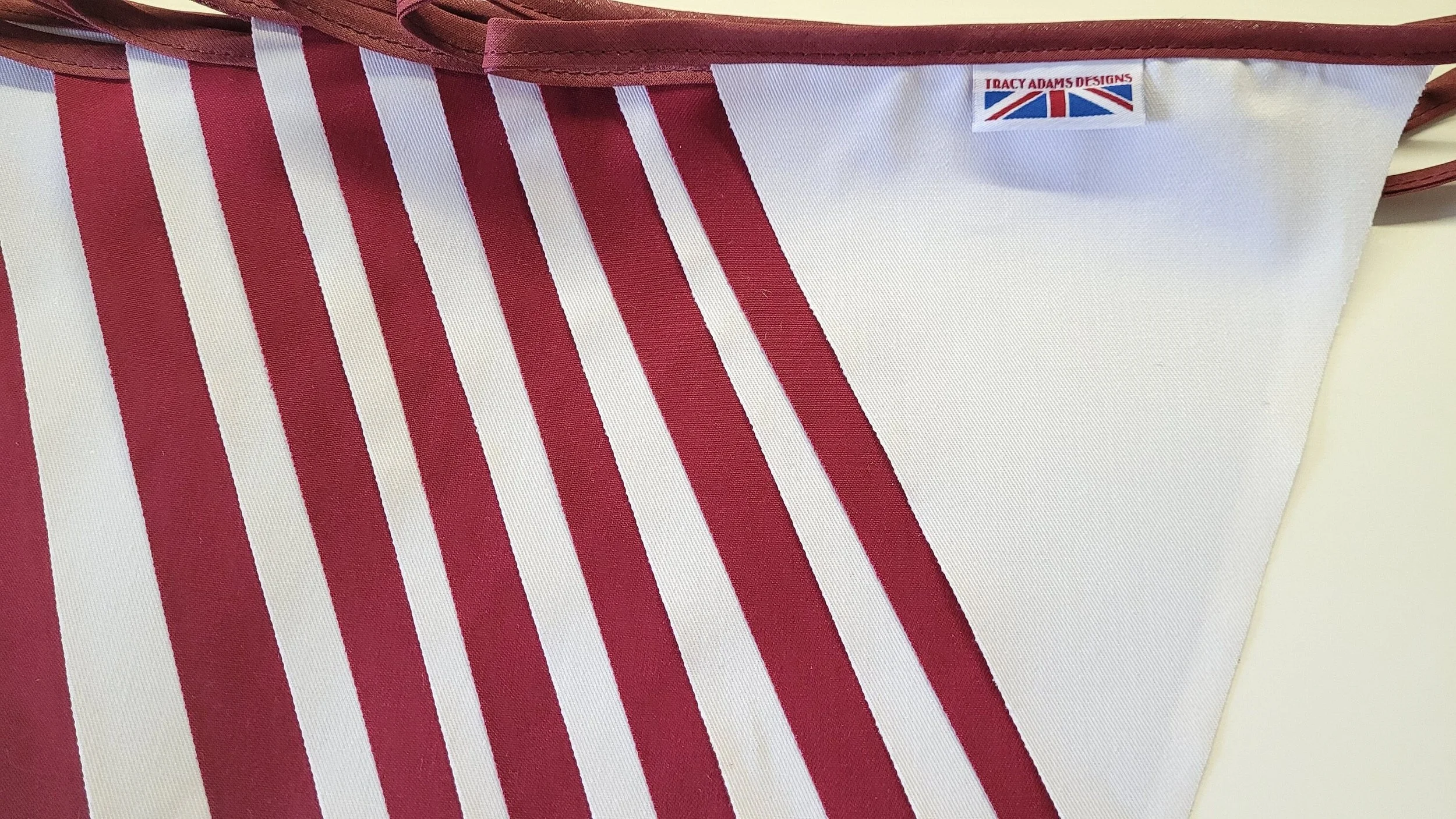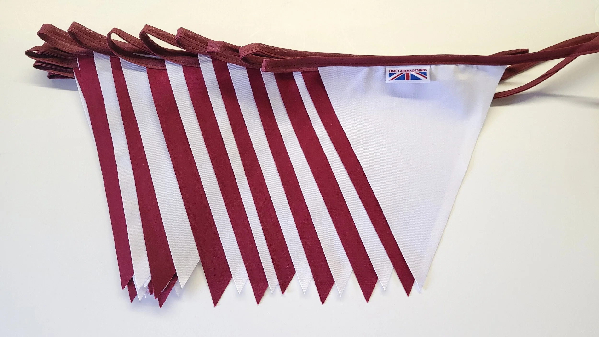 Shop › Burgundy and white - 10 mtr fabric bunting - perfect for hearts fans Image 1 of 4 Image 2 of 4 Image 3 of 4 Image 4 of 4 Burgundy and white - 10 mtr fabric bunting - perfect for hearts fans £11.99 Burgundy and White buntingperfect for hearts fans10 metre has 30 flags Poly cotton single sided flags with cotton hanger flags are the same colour on reverse of the flag as the frontFlags approx 20cm in length and 22cm width at the topAll made in England to fantastic qualityOther colours and lengths available please don't hesitate to message me Add To Cart Added! Burgundy and White buntingperfect for hearts fans10 metre has 30 flags Poly cotton single sided flags with cotton hanger flags are the same colour on reverse of the flag as the frontFlags approx 20cm in length and 22cm width at the topAll made in England to fantastic qualityOther colours and lengths available please don't hesitate to message me