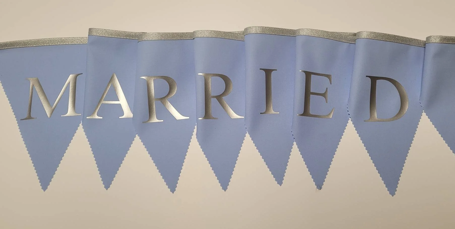 Just Married Bunting: Silver Print Fabric Wedding Garland