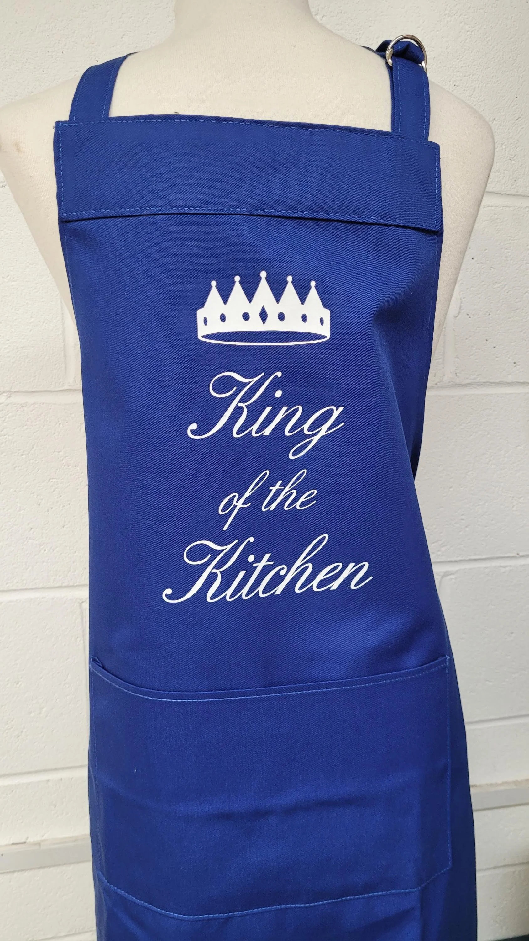Shop › king of the kitchen cotton apron. Option to personalise - Made in England teenage / small Image 1 of 4 Image 2 of 4 Image 3 of 4 Image 4 of 4 king of the kitchen cotton apron. Option to personalise - Made in England teenage / small £11.99 King of the kitchen design printed apronSize approx - small adult / teenoption to personalise the apronChoice of colour of apron - Red, Grey, Blue or Blackand choice of print colour - White or Silver Apron size 77cm x 54cmD ring adjuster for neck tieif you would like to personalise your apron either message me or attach a note to your order with the name All aprons made and printed in England Apron colour: Select Apron colour Black Grey Red Pink Blue Print colour: Select Print colour White Silver Add To Cart Added! King of the kitchen design printed apronSize approx - small adult / teenoption to personalise the apronChoice of colour of apron - Red, Grey, Blue or Blackand choice of print colour - White or Silver Apron size 77cm x 54cmD ring adjuster for neck tieif you would like to personalise your apron either message me or attach a note to your order with the name All aprons made and printed in England