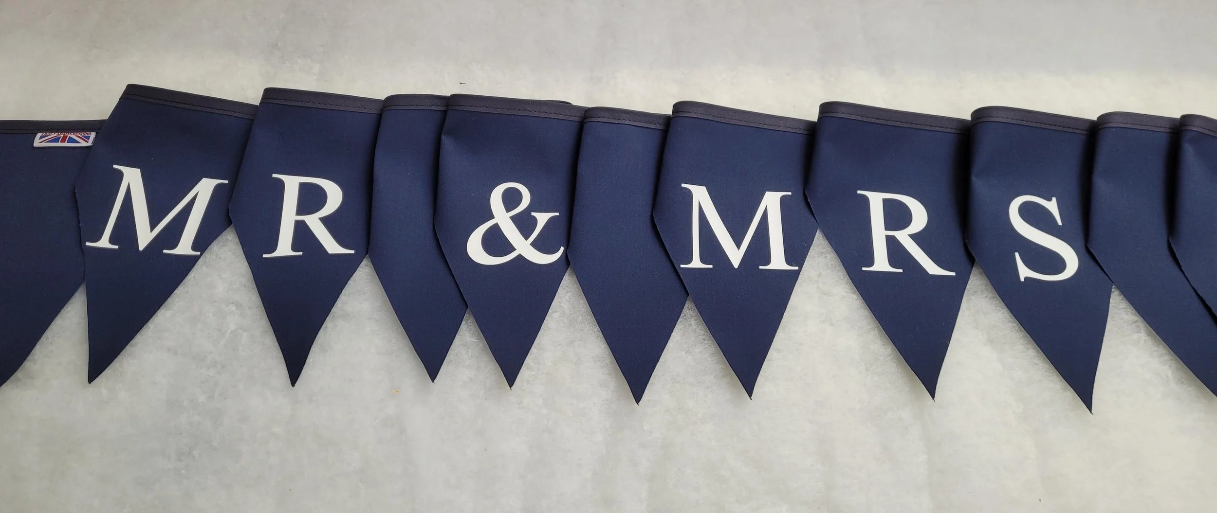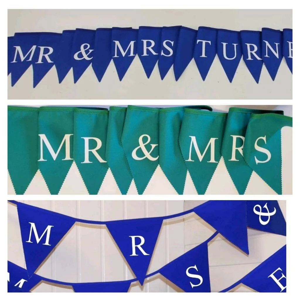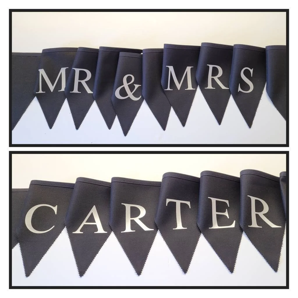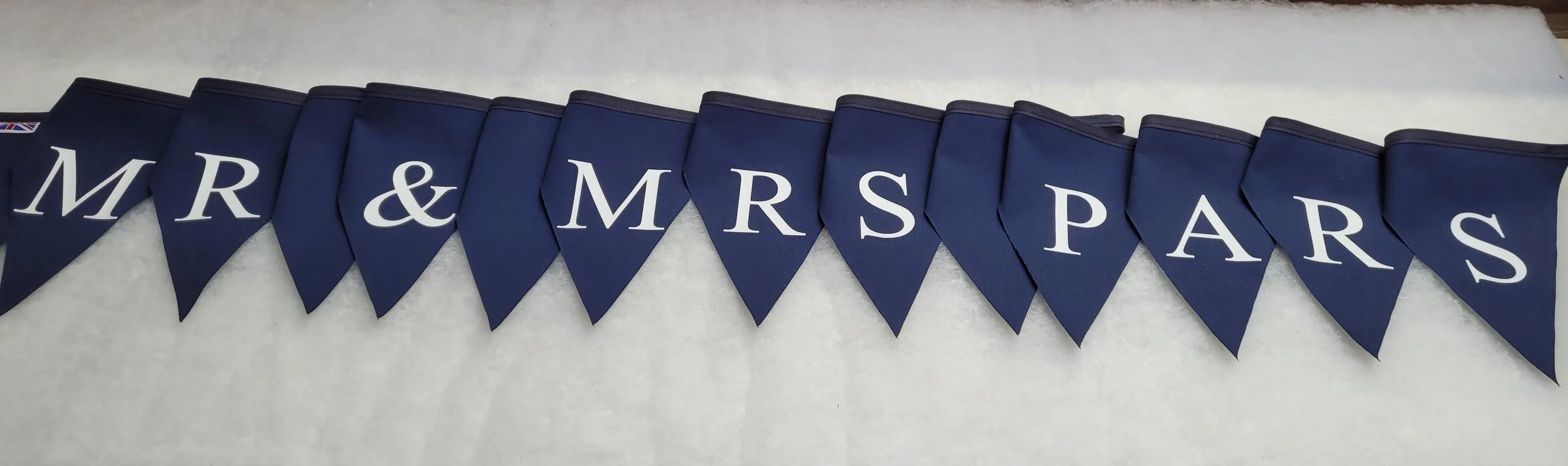 Personalised Mr & Mrs (add surname) Wedding Bunting. Made in England. Many colours available