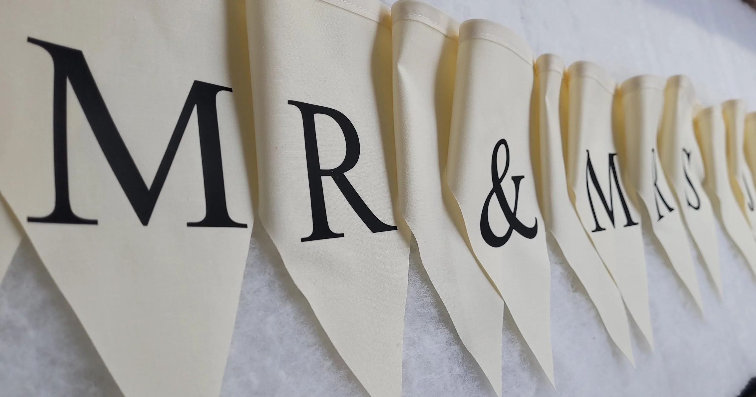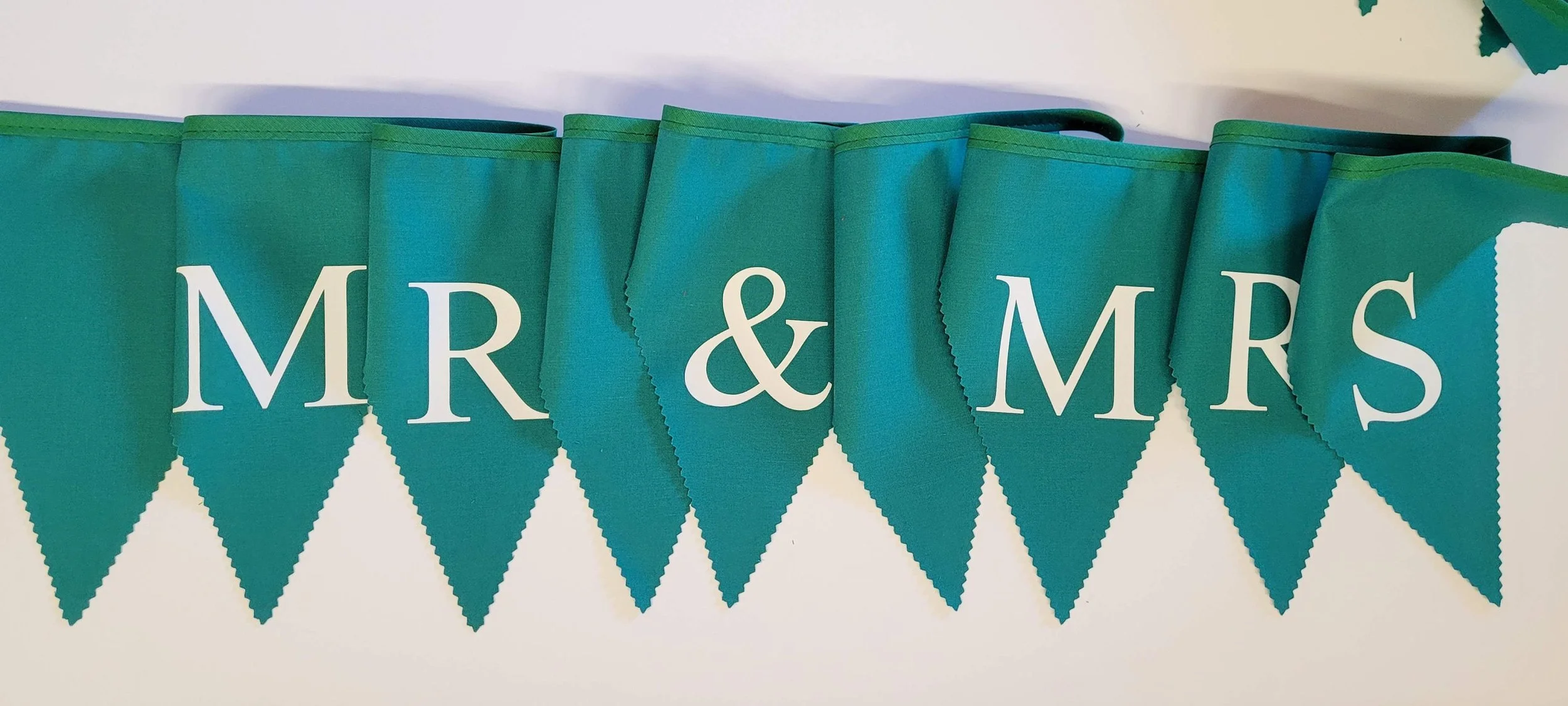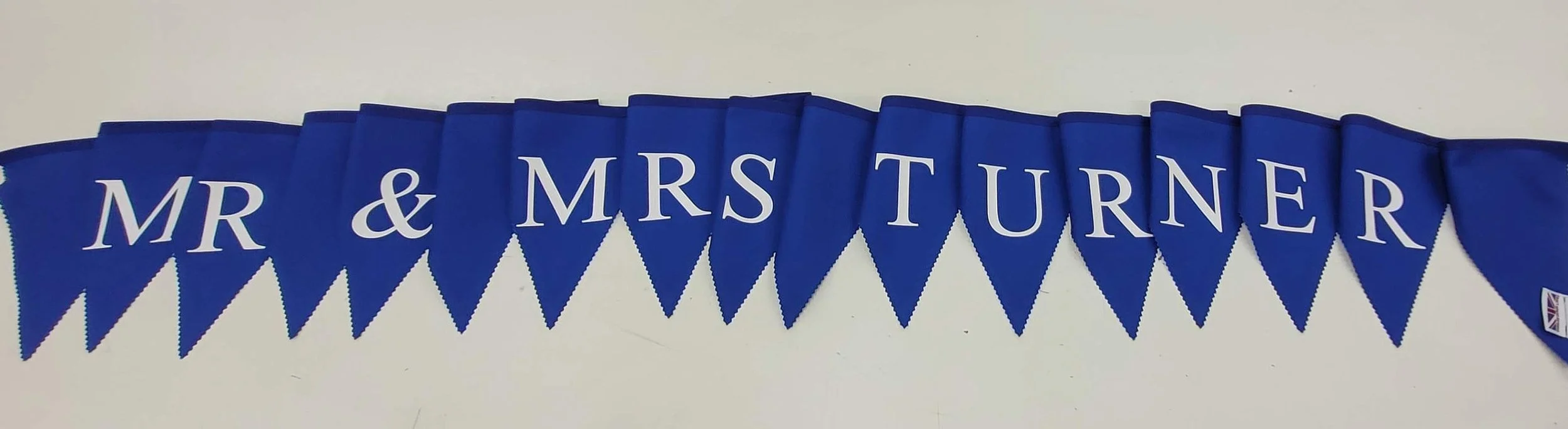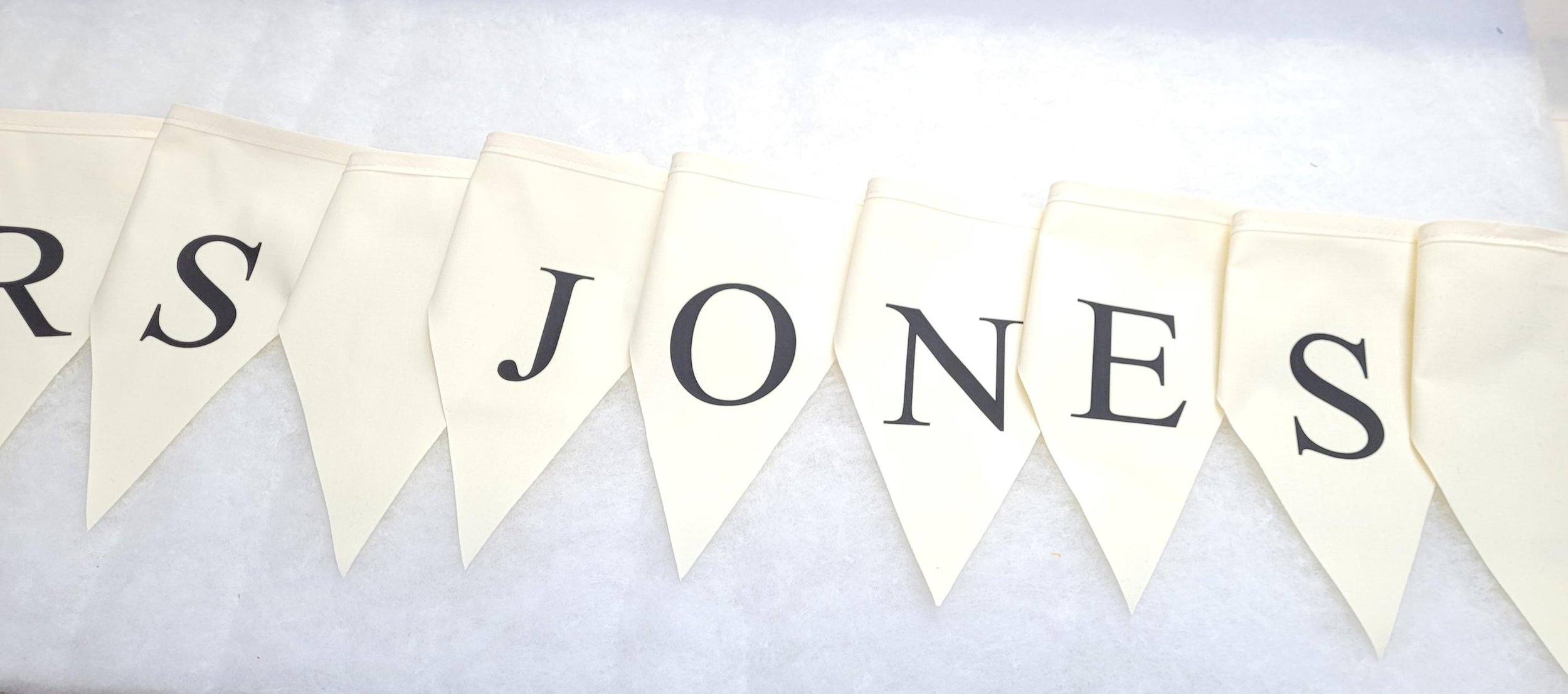 Personalised Mr & Mrs (add surname) Wedding Bunting. Made in England. Many colours available
