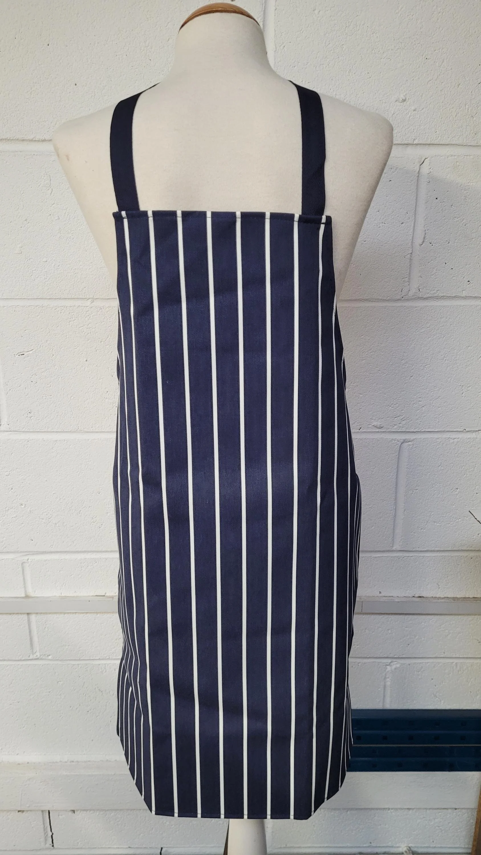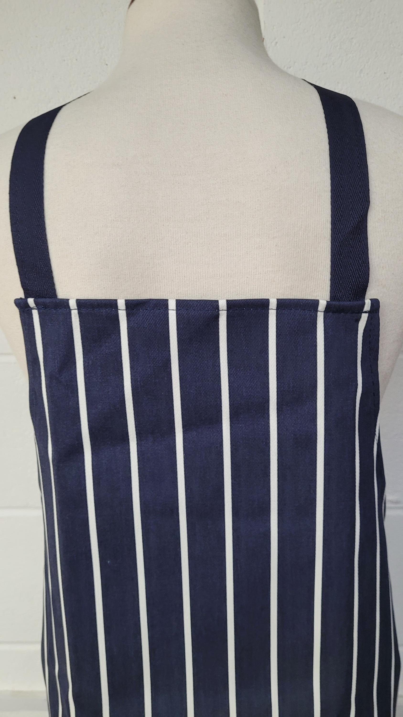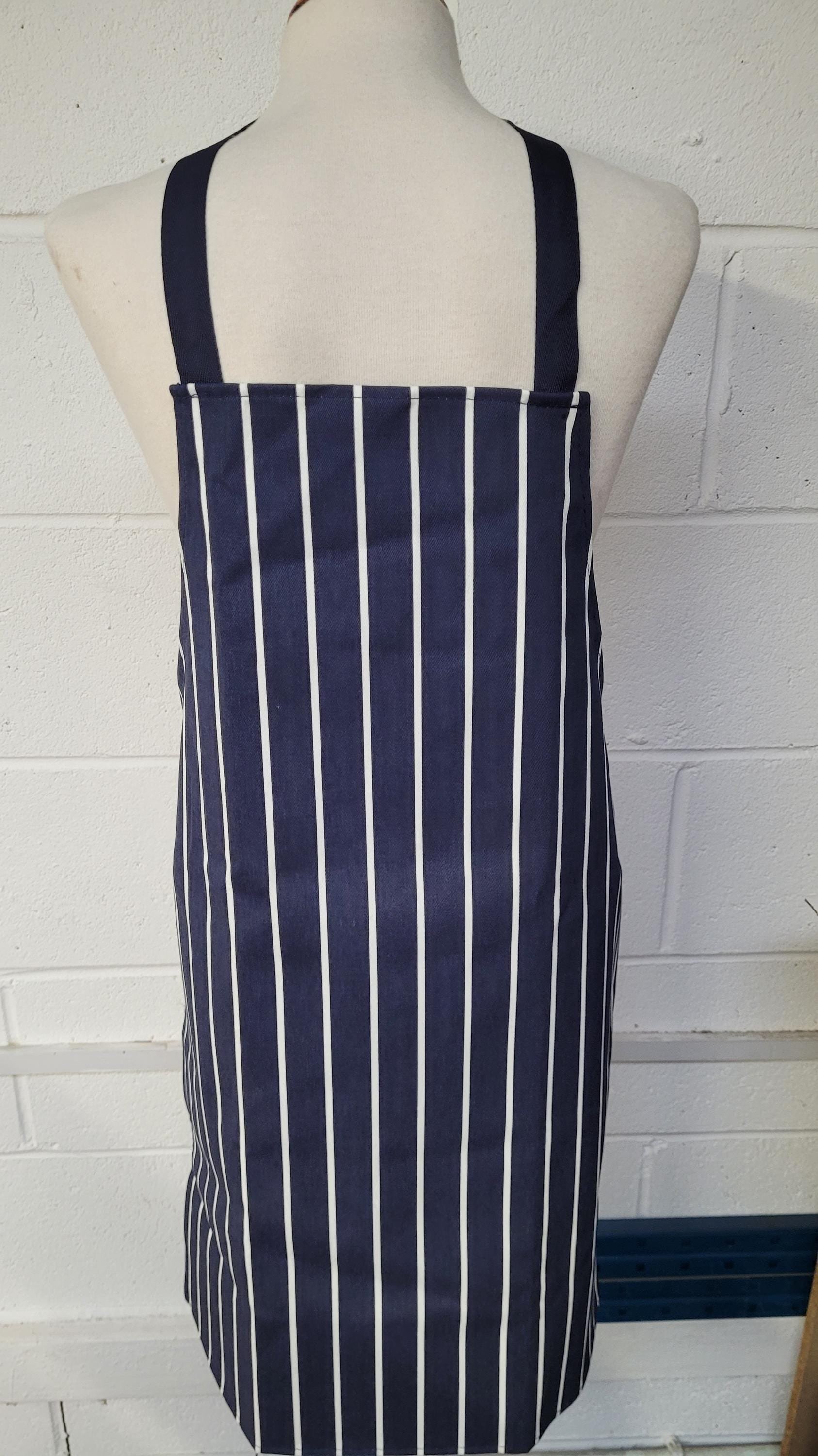 Shop › Small / teenage navy cotton butchers stripe apron - made in England Image 1 of 3 Image 2 of 3 Image 3 of 3 Small / teenage navy cotton butchers stripe apron - made in England £8.00 Navy butcher stripe cotton apronwebbing ties Size of apron 77cm x 54cm100% printed cotton apronwebbing ties - 76cmMachine washable at 40°CAll made in UK to fantastic quality Add To Cart Added! Navy butcher stripe cotton apronwebbing ties Size of apron 77cm x 54cm100% printed cotton apronwebbing ties - 76cmMachine washable at 40°CAll made in UK to fantastic quality