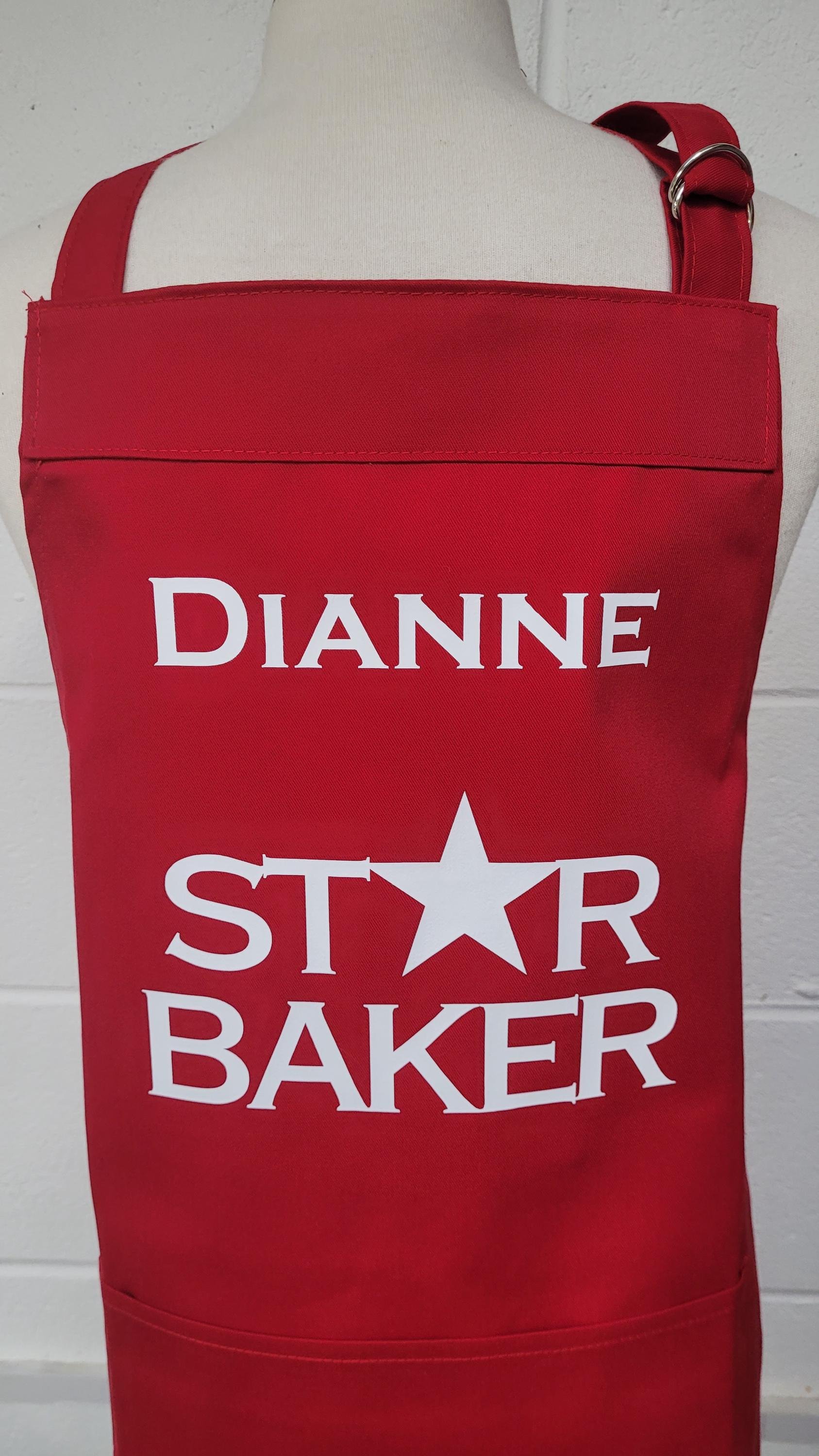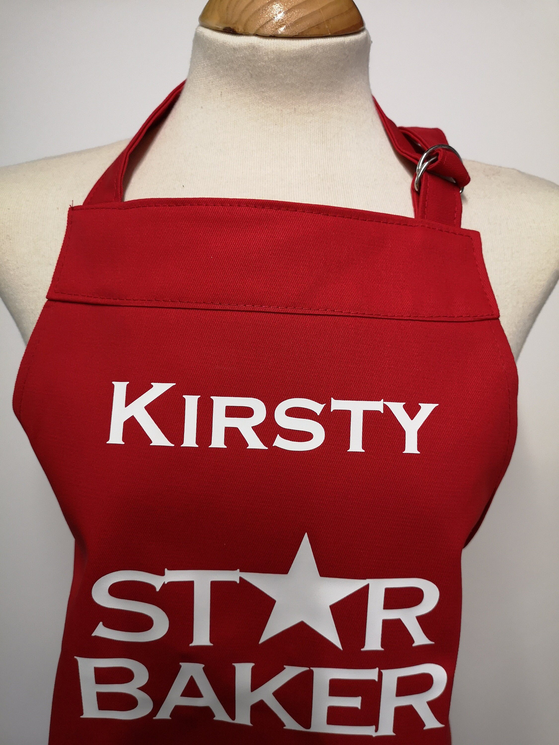 Shop › Teenage / small red Star baker personalised apron - Made in England Image 1 of 9 Image 2 of 9 Image 3 of 9 Image 4 of 9 Image 5 of 9 Image 6 of 9 Image 7 of 9 Image 8 of 9 Image 9 of 9 Teenage / small red Star baker personalised apron - Made in England £11.99 Red Star Baker ApronAdult : Small / teenageOption to personalise the apron with any nameif you would like to personalise your apron either message me or attach a note to your order with the name All aprons made and printed in EnglandSize of apron - 77cm x 54cm approx100% Cotton, printed apronMetal D ring for adjusting neck tieSelf ties in same colour as apron : 77cmMachine washable at 40°COther sizes available Print colour: White Silver Black Add To Cart Added! Red Star Baker ApronAdult : Small / teenageOption to personalise the apron with any nameif you would like to personalise your apron either message me or attach a note to your order with the name All aprons made and printed in EnglandSize of apron - 77cm x 54cm approx100% Cotton, printed apronMetal D ring for adjusting neck tieSelf ties in same colour as apron : 77cmMachine washable at 40°COther sizes available